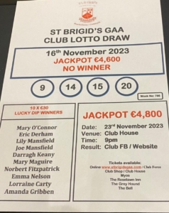The final score was St. Brigid’s 2-08 Fingallians 1-05. Scores by W. Finnegan (0-03), Alan Nolan (1-01), James O’Connell (1-00), Brian Donavan, Brian Moran, John Dunning and Noel Doonan (all 0-01)